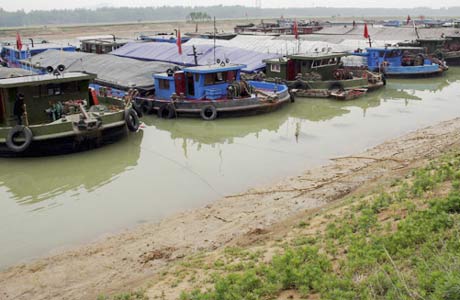 Ships stranded due to low water levels are seen near the Zaozhuang section in east China's Shandong province, along the famous Beijing – Hangzhou Grand Canal on May 22, 2011.