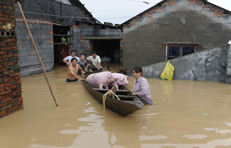More than 70 km of rural dikes are close to overflowing in the city of Lanxi in east China's Zhejiang province, an authority with the provincial flood control and drought relief headquarters said Monday.