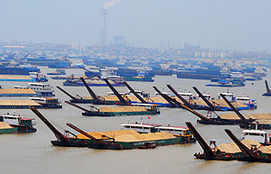 Ships stranded due to low water levels are seen near the Zaozhuang section in east China's Shandong province, along the famous Beijing – Hangzhou Grand Canal on May 22, 2011.