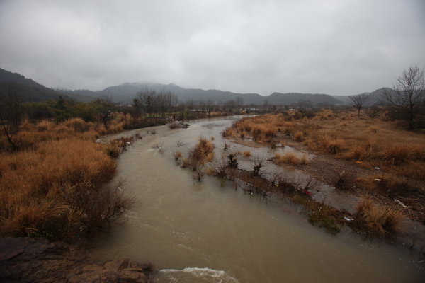 Withered plants along a river polluted by rare earth processing in Ganzhou, Jiangxi province on Feb 17, 2011. [ Photo/CFP] |