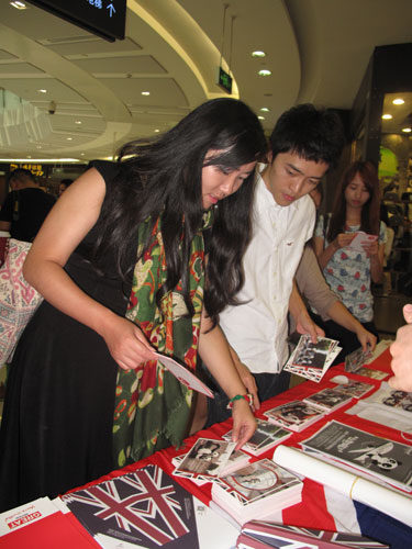 Visitors in Chengdu, Sichuan province, admire post cards depicting panda mascots in Britain on Monday as part of the event celebrating the launch of British Airways' direct flight to Chengdu. [Huang Zhiling/www.chinadaily.com.cn]