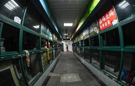 The price of live chicken was pulled down a lot by its declining demand due to fear of H7N9 avian flu virus infections, alluring many local residents to the market to buy more than 10 chickens at a time