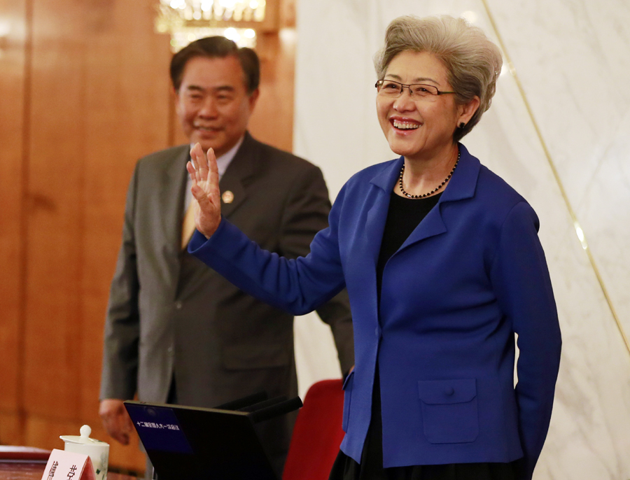 Fu Ying, spokesperson for the first session of the 12th National People's Congress (NPC), speaks at the news conference on the first session of the 12th NPC at the Great Hall of the People in Beijing, capital of China, March 4, 2013. [Photo by Feng Yongbin/Asianewsphoto]
