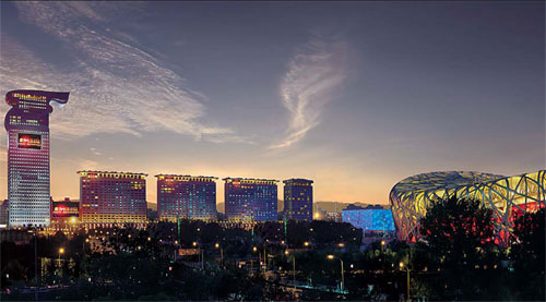 Pangu Seven Star Hotel, one of Beijing's most extravagant hotels, is housed in the dragon-shaped Pangu Plaza, just next to the Bird's Nest. Photo provided to China Daily |