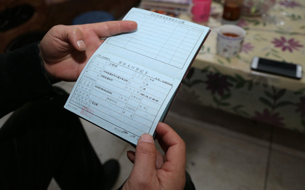 Wang's father shows the household registration page of Wang Peipei. [Photo/CFP]
