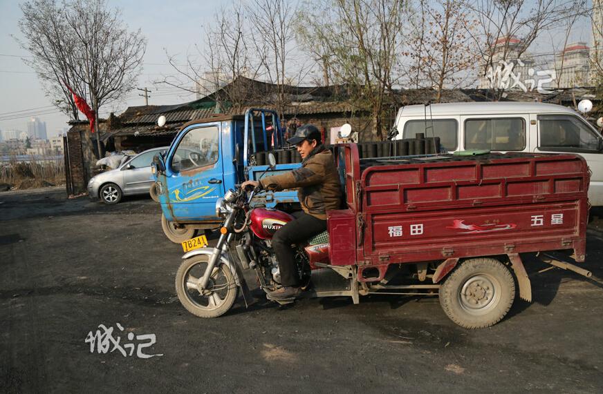 Tian is on his way to haul honeycomb briquettes. [Photo/hsw.cn]