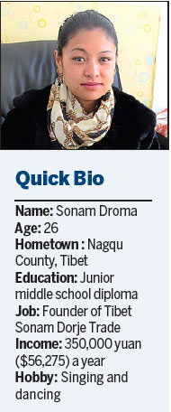 Sonam Droma quit her comfortable job in the public sector three years ago to set up an online store that sells traditional goods from the Tibet autonomous region.