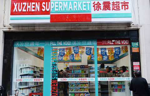 A view of "Xuzhen Supermarket", an art installation that highlights the emptiness of mass consumption, on Yuyuan Road in Shanghai, on April 13, 2016. [Photo/VCG] |