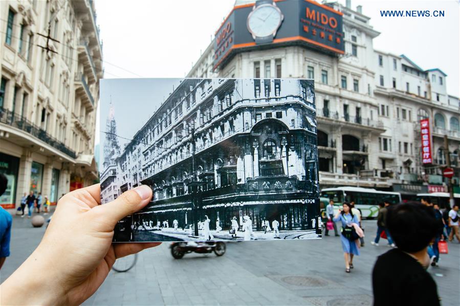 A file photo of the Sincere Company is put to match the real scene of the building, now the Shanghai Fashion Store, in Shanghai, May 23, 2016. The Sincere department store was opened in 1917. Great changes have taken place in Shanghai, where the Communist Party of China (CPC) was founded in 1921. This year marks the 95th anniversary of the founding of the CPC.[Photo/Xinhua]