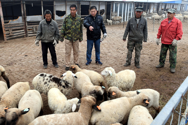 A farmer with several years' experience of keeping sheep in the US founded a sheep farm in Hebei province last year. Photo/Xinhua |