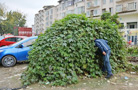 A photo of a minivan covered by tangled vines with only the car plate exposed went viral online.