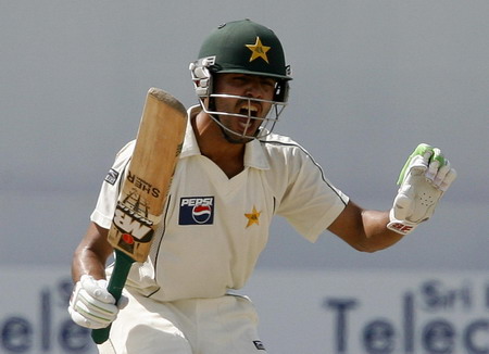 Pakistan's Fawad Alam shouts to his teammate to abort a run on the second day of their second test cricket match against Sri Lanka in Colombo July 13, 2009. [Agencies]
