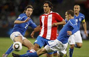 Defending champions Italy came from behind to make a 1-1 tie with Paraguay here on Monday in the 2010 FIFA World Cup Group F opener.