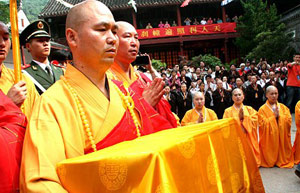 Chinese Buddhist monks and archaeologists Saturday revealed what they believe to be a part of the skull of Sakyamuni, the founder of Buddhism, in east China's Jiangsu province.