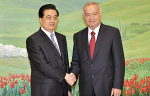Chinese President Hu Jintao met his Russian counterpart Dmitry Medvedev in the Uzbek capital of Tashkent Thursday for talks on ways of further advancing the China-Russia strategic cooperative partnership.