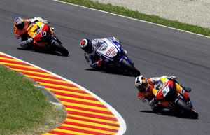 Ducati MotoGP rider Casey Stoner (front) of Australia and his team mate Nicky Hayden of the US compete during the Italian motorcycling Grand Prix race at the Mugello circuit in central Italy June 6, 2010.