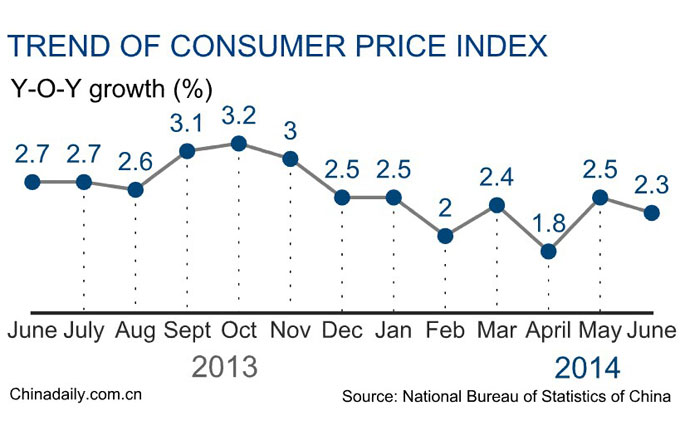 Consumer price index, a main gauge of inflation, grows 2.3 percent year-on-year in June, triggering concerns of broader monetary policy easing as a whole year outlook points to a soft inflation rate.
