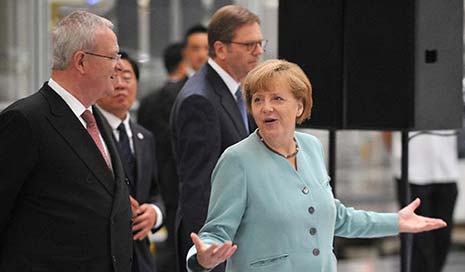 Merkel toured an FAW-Volkswagen joint production plant in Chengdu, marking the prelude to a program of building electric charging stations for cars and infrastructure in China.