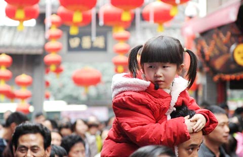 Tourists are seen on a street in Ciqikou Town, southwest China's Chongqing Municipality, Feb 20, 2015.