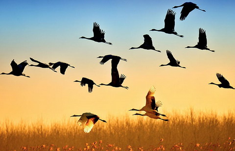 Red-crowned cranes in Yancheng national reserve, East China's Jiangsu province.