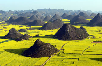 Tourists enjoy the scenery of Bamei village in Guangnan county, Southwest China's Yunnan province, Feb 23, 2015. Bamei village attracts lots of visitors with its nature.