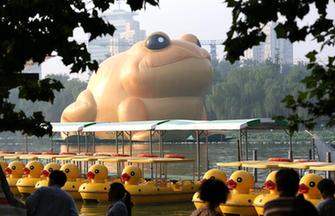 A giant inflatable toad is shown in the "Summer in Yuyuantan", a recreational summer event in Beijing's Yuyuantan Park on Saturday, July 19, 2014.