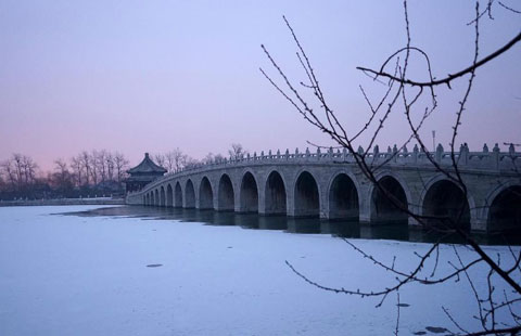 Photo taken on Jan 25, 2015 shows a snow view of the Summer Palace in Beijing, capital of China. A light snowfall hit Beijing late Saturday.