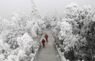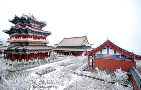 The first snow this year brought stunning sceneries to the tourist site that attracts visitors for its miraculous geographic landform, unparalleled landscape and profound culture.