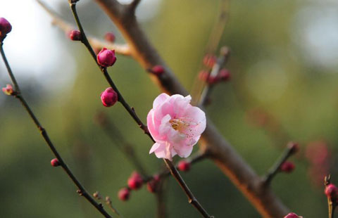 Photo taken on Jan 24, 2015 shows plum blossom at the botanic garden of Hangzhou, capital of East China's Zhejiang province. The temperature of Hangzhou reached 24 degrees Celsius Saturday, the highest of this winter.