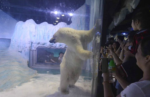 A live polar bear currently on display in a shopping center in southern China's Guangzhou has recently triggered concerns from the mall's many visitors.