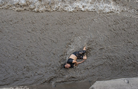 A man who fell off an embankment of Qiantang River was luckily saved by a journalist before being swept off by the river’s rising tide in Hangzhou, East China's Zhejiang province, on Monday.