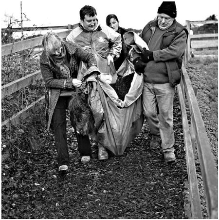 Top: Owners who cannot afford their horses leave them at the Dunsink tip, near Dublin. Rescuers, above, were unable to save an abandoned pony. |