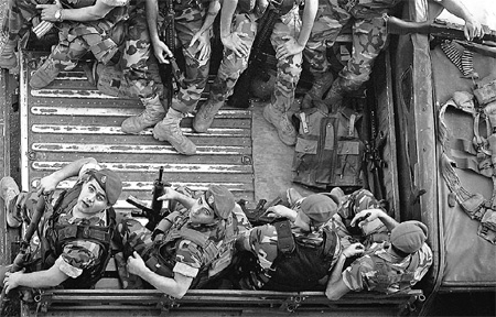 Lebanese army troops patrol central Beirut on Monday amid rising tensions in the city after dozens of young men appeared on the streets prompting fears of violence, following the announcement that the prosecutor of the Special Tribunal for Lebanon filed his indictment on Tuesday for the 2005 murder of former premier Rafiq al-Hariri. Joseph Eid / Agence France-Presse |