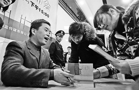 Murong Xuecun sells his book about lawyers in Wuhan, Hubei province, in this 2008 photo. Wu Han / for China Daily |