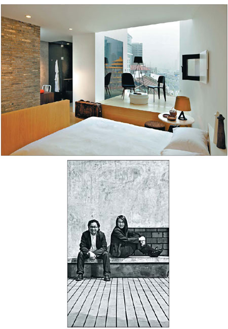 Top: The Waterhouse shows off Neri & Hu's unique approach to style and space. Above: Neri and Hu, perfect partners. Neri & Hu Design and Research Office / for China Daily |