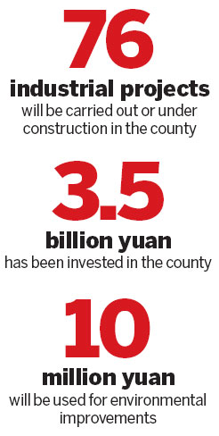 About 76 industrial projects with a total estimated investment of 64.2 billion yuan will be carried out or are currently under construction in the county.