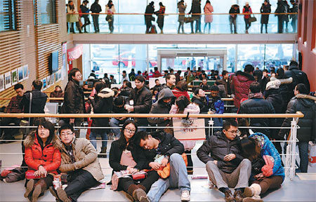 Waiting to tie the knot on Friday, Jan 4, 2013, a date that has a similar pronunciation to "love you for a lifetime", is tiring for couples at the Haidian District Marriage Registration Office in Beijing. Below: Ecstasy overwhelms newlyweds the moment they get the certificate, as seen at Dongjiang District Marriage Registration Office in Neijiang, Sichuan province. Liu Zhen / China News Service