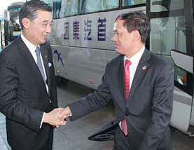 Stephen Hsu (left), general manager of Legendale Hotel Beijing welcomes ASEAN Secretary-General Le Luong Minh upon his arrival.