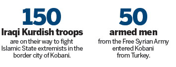 A small group of Syrian rebels also entered Kobani from Turkey on Wednesday to help Kurdish fighters battle IS.