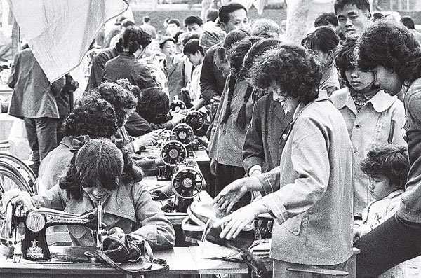 The Chinese garment industry has undergone dramatic development since the opening-up policy adopted at the Third Plenary Session of the 11th Central Committee of the CPC in 1978, together with the decision to reform the Chinese economy away from centralized planning. Fujian and Zhejiang provinces are generally seen as the most important manufacturing bases in China. Factory facilities, innovation, employees' skills and, most important, the quality of products have witnessed tremendous improvement in recent decades. Female employees work on clothing machines in a garment factory in Ningbo, Zhejiang province, in October 2004.