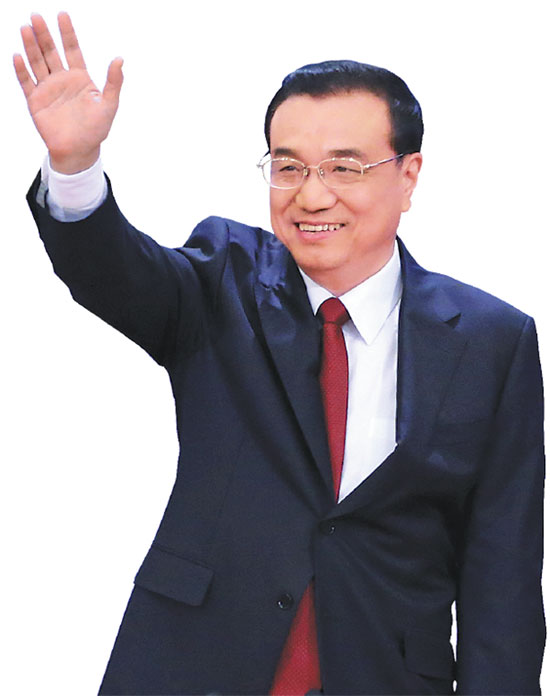 Premier Li Keqiang greets the media as he attends a news conference in the Great Hall of the People in Beijing on Wednesday. Feng Yongbin / China Daily