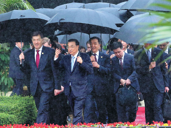 Premier Li Keqiang and other foreign leaders attending the Boao Forum for Asia go for lunch in Boao, Hainan province, on Thursday. Wu Zhiyi / China Daily