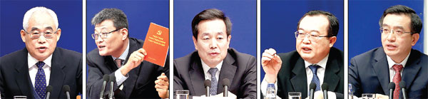 Officials attending a news briefing held by the State Council Information Office on Friday include (from left to right) Wu Yuliang, deputy chief of the Central Commission for Discipline Inspection, Xiao Pei, vice-minister of supervision, Chen Xiaojiang, director of the CCDI's publicity department, Liu Jianchao, director of the commission's International Cooperation Bureau, and Luo Dongchuan, director of the CCDI's Case Review Department. Photos by Wang Zhuangfei / China Daily