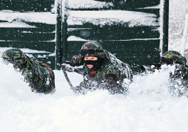 Border police officers conduct an anti-terror drill in Bortala, Xinjiang Uygur autonomous region, this month. The top legislature passed the country's first anti-terrorism law on Sunday, together with several other laws. Zhang Jia / Xinhua
