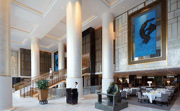 The new-look lobby of The Peninsula Beijing after the renovation. Photos Provided to China Daily |
