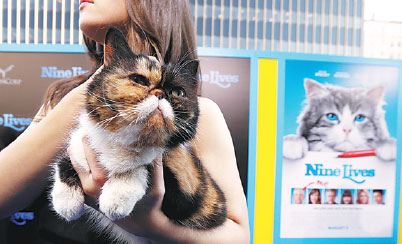 Pudge the cat is held at the film premiere of Nine Lives at the TCL Chinese theatre in Hollywood, California. Mario Anzuoni / Reuters |