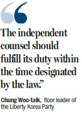 "The independent counsel should fulfill its duty within the time designated by the law," Representative Chung Woo-taik, the floor leader of the Liberty Korea Party, said. "It cannot be extended indefinitely."