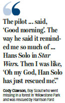 "The pilot turned round and said, 'Good morning'. The way he said it reminded me so much of his role of Hans Solo in Star Wars. Then I was like, 'Oh my God, Han Solo has just rescued me, how cool is that'. 'I thought I was delirious at first but then realised I wasn't dreaming."