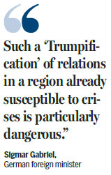 "Such a 'Trumpification' of relations in a region already susceptible to crises is particularly dangerous," he said.