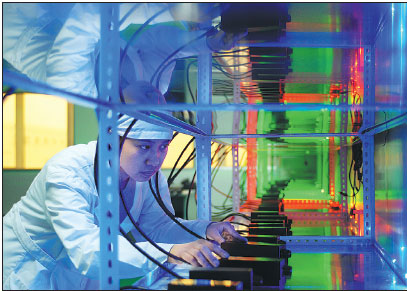 A technician tests photoelectric products at one of the high-tech companies in Changchun high-tech zone.Photos Provided To China Daily |